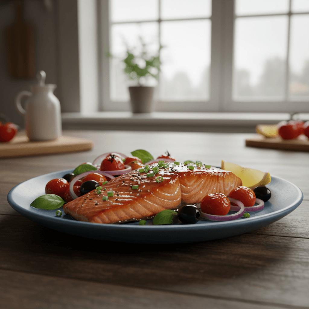 Salmón glaseado teriyaki mediterráneo